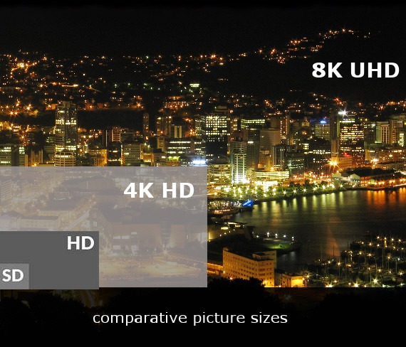 In the last six months, the staggering rate of development has seen 8K UHD arrive! Above: You can see the comparison of 8K UHD compared to SD (standard definition) picture size. This is producing unparalled picture quality on HD broadcast and video.
